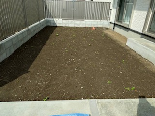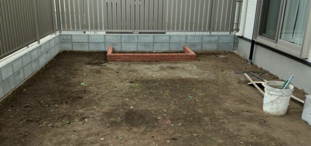こちらに花壇の施工を行い人工芝を敷き込みます