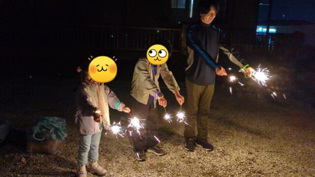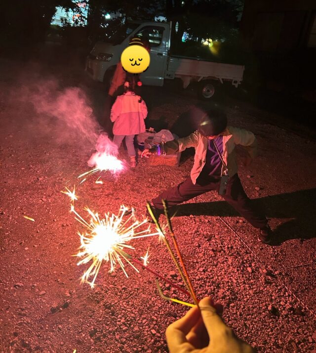 お休みの時に家族で花火をしました🎇
