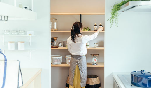 2食品やストック品を収納してキッチンがいつもスッキリ。