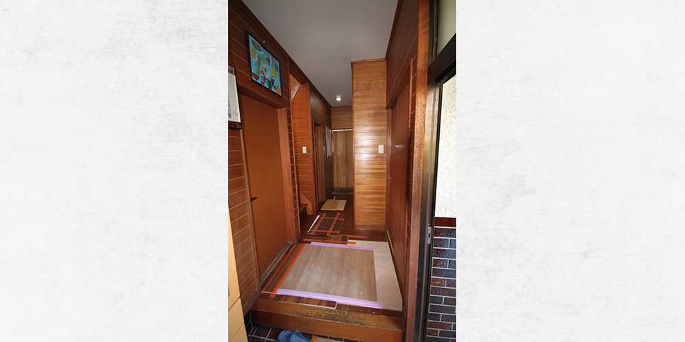 床の増貼り工事でした。弱いところは補強し上から仕上げのフローリングを貼りました。 階段との取り合いの所等は大工さんの腕の見せ所ですが、大変綺麗に仕上げる事ができました。