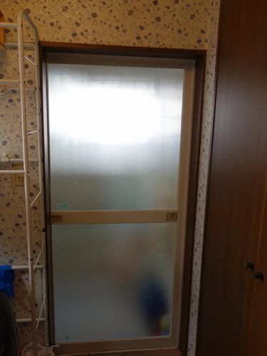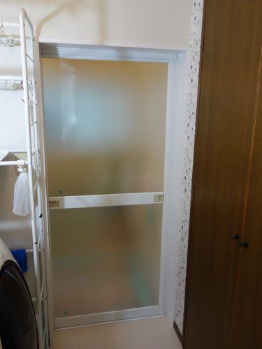 お風呂の引戸の壁とのすき間から水がまわり、浴室の入口の床付近が腐食していた為、写真ではわかりづらいですが引戸のすき間にパッキンをつけ、浴室入口枠の交換、床の補修及びCFシートの貼替えを行いました。これで大丈夫だと思いますが、経過観察が必要ですね!